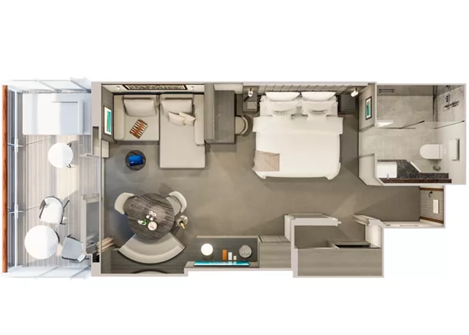 | Ocean Suites - Ocean Grand Terrace Suite Suita 28 m² + kúpeľňa 4 m² + terasa so sedením a pohovkou 11 m². 6/7. paluba. Spálňa s obývacou časťou, šatník. Minibar, kávovar, vodná kanvica, ďalekohľad, sejf, kúpeľňa so sprchou. Fľaša šampanského na privítanie. 6, 7. paluba. Maximálna kapacita 2 dospelé osoby + 1 dieťa do nedovŕšených 18 rokov. | 9 605 € 9 605 € za osobu | ||